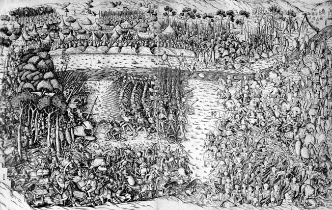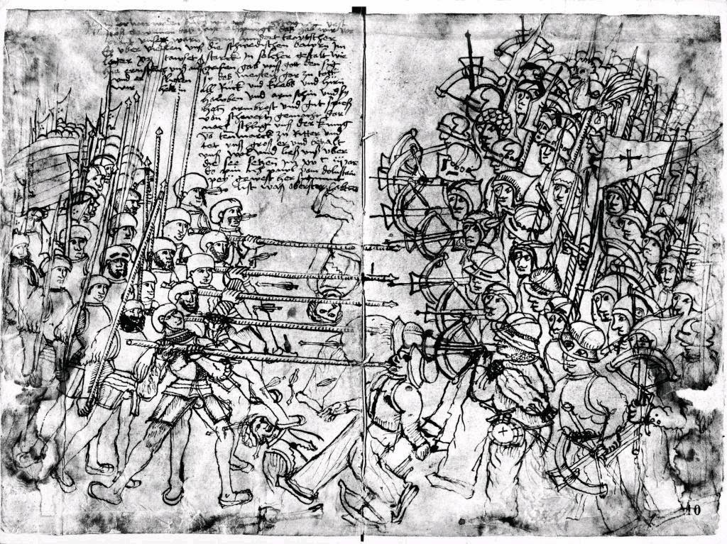Fornovo, image dates to 1496.  I confess this is a repeat but it is good.  All underarm, facing cavalry
